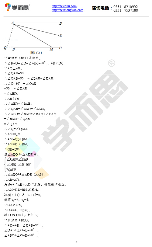 2014-2015年九年级期中考试数学模拟试题二答案(5)