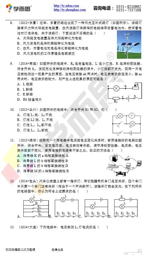 2014-2015年九年级期中考试物理模拟试题一(3)