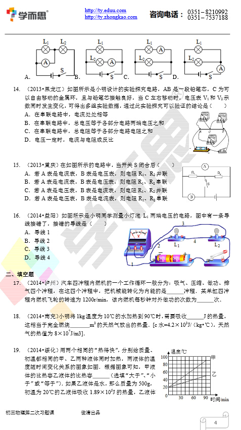 2014-2015年九年级期中考试物理模拟试题一(4)