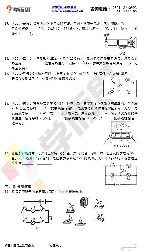 2014-2015年九年级期中考试物理模拟试题二(3)
