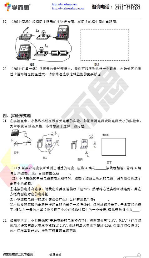 2014-2015年九年级期中考试物理模拟试题二(4)