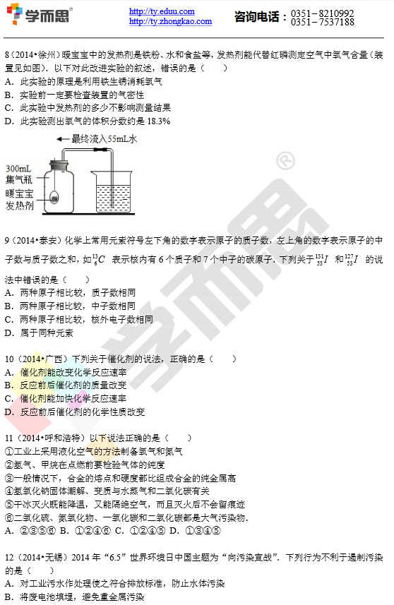 2014-2015年九年级期中考试化学模拟试题一(3)