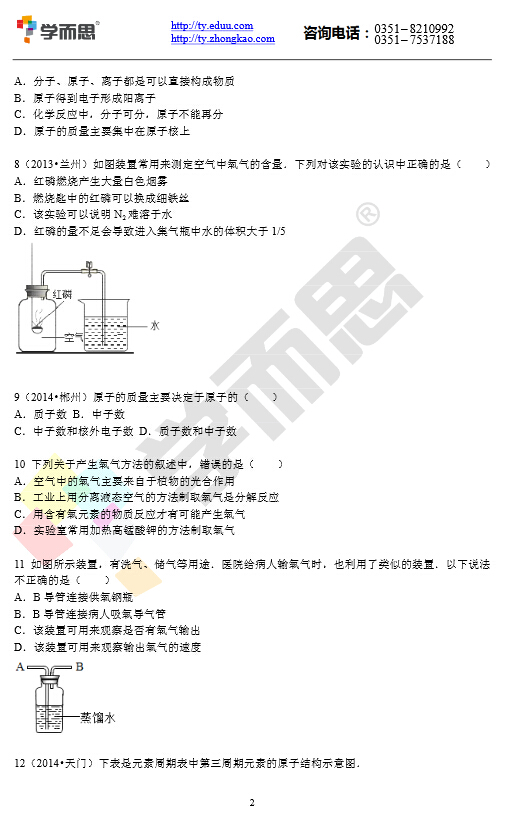 2014-2015年九年级期中考试化学模拟试题二(2)