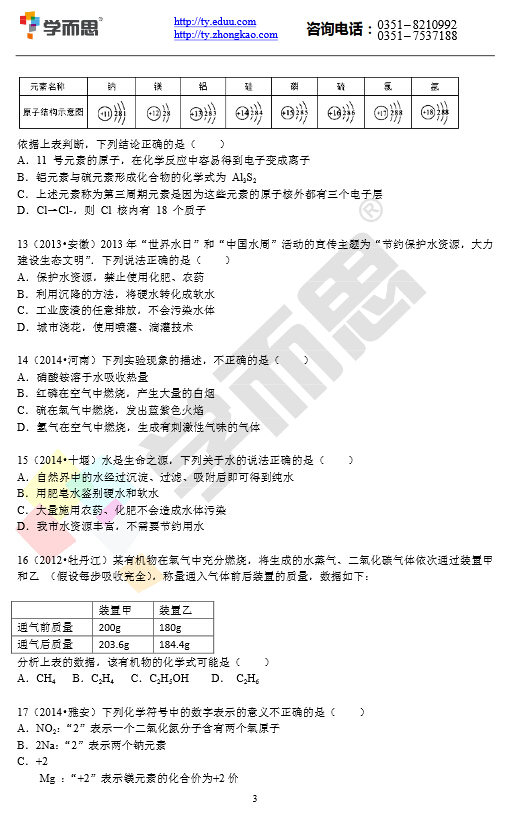 2014-2015年九年级期中考试化学模拟试题二(3)