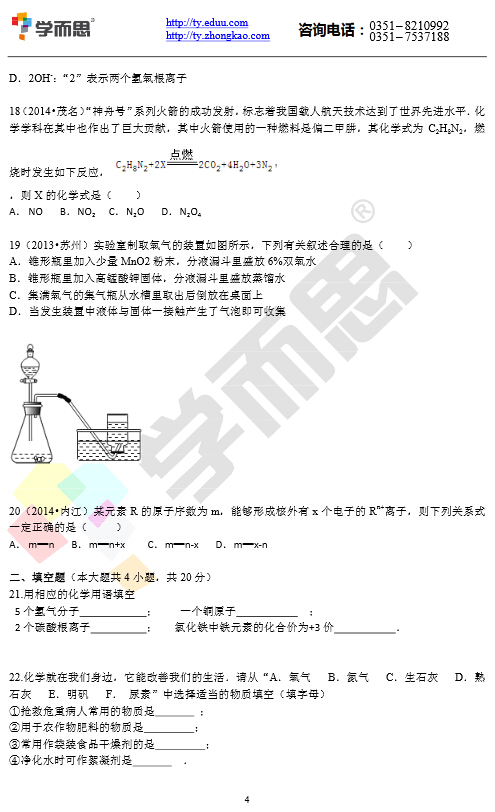 2014-2015年九年级期中考试化学模拟试题二(4)