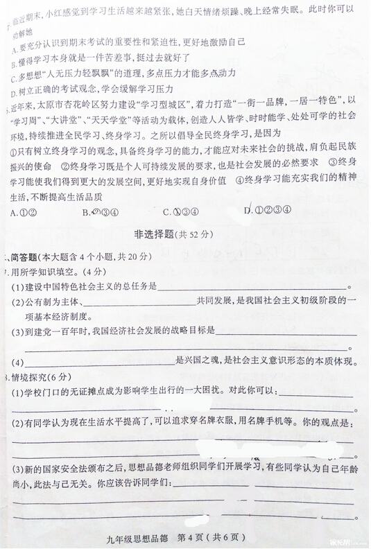 太原市2015-2016学年九年级第二次测评思品试题(4)