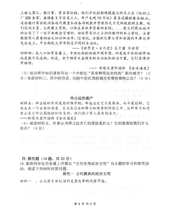 山西实中2016-2017学年初三上10月月考历史试题(6)