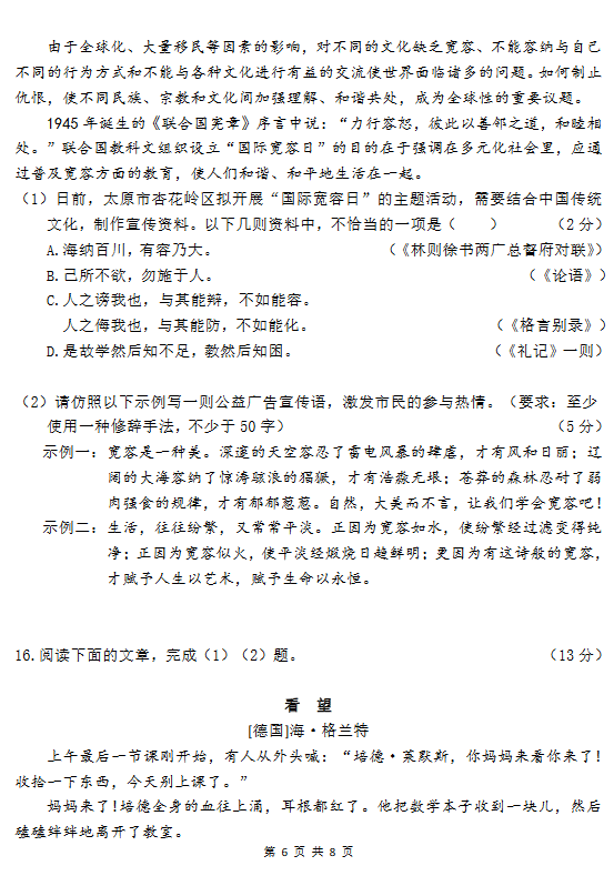 山西省实验中学2017-2018学年上学期初三期中语文试题(6)